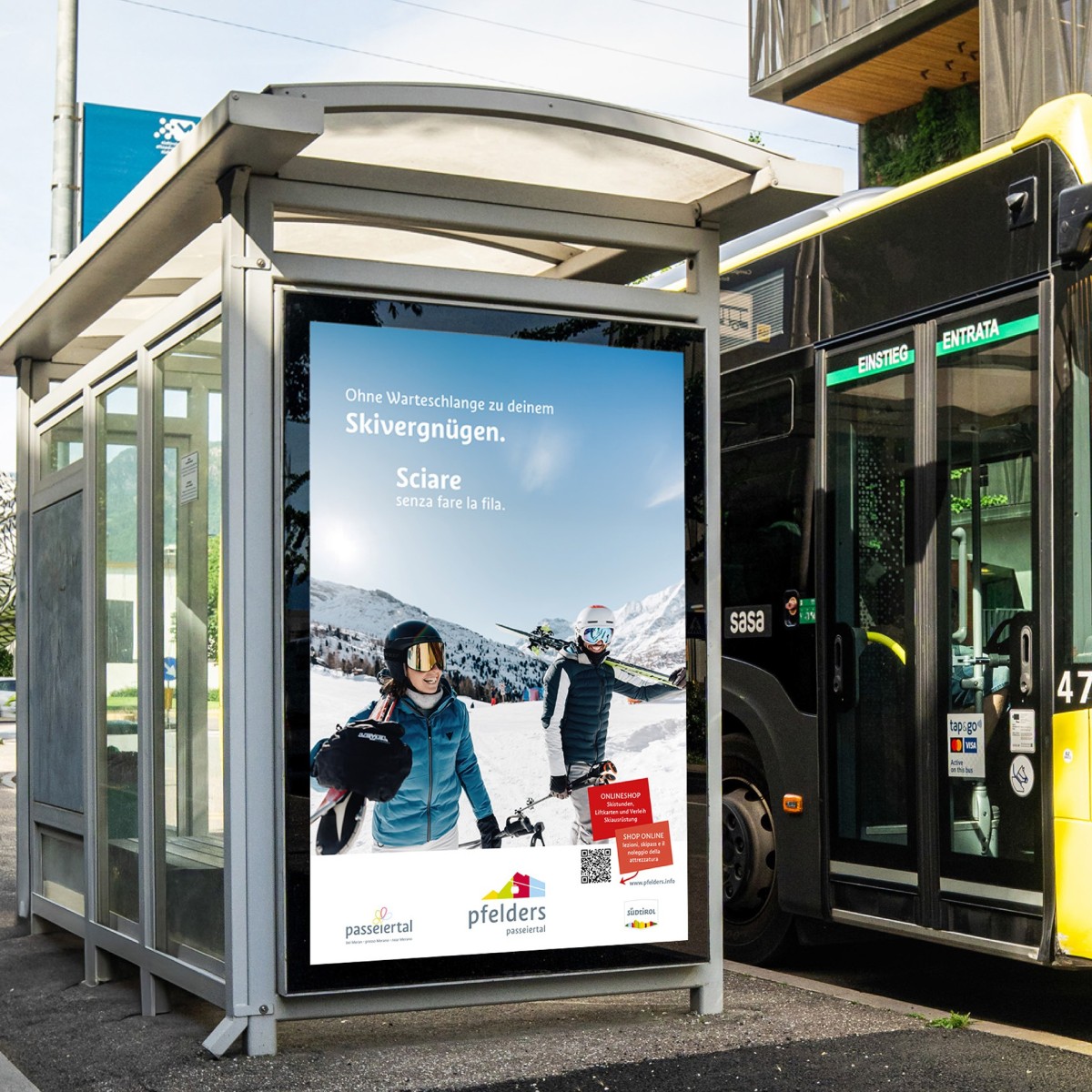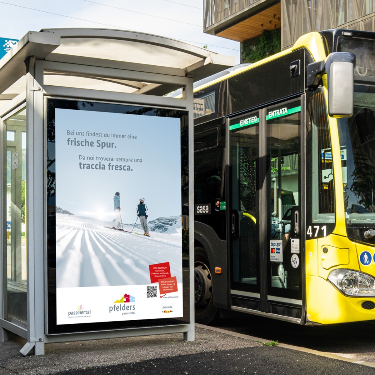 Logo restyling, progettazione di tutti i materiali stampati, annunci pubblicitari, banner, poster Citylight, creazione di brevi video.